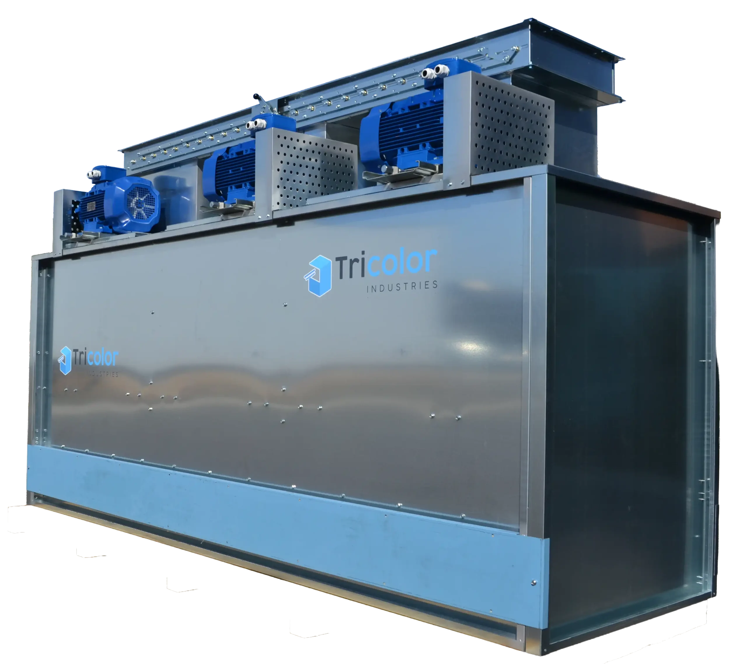 Il dispose de 3 rangées horizontales de filtres fibre de verre en cassette, chacun filtrant l’air jusqu’à 85%, d’un ou plusieurs moteurs entraînant chacun 2 ventilateurs et d’un volet de réglage pour régler le débit d’air filtré.