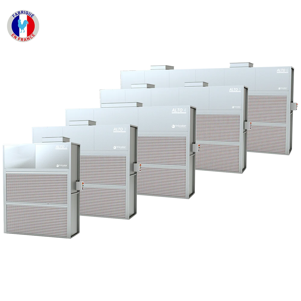 Les murs aspirants pour peinture ALTO sont équipés de filtres en carton plissé conçus pour piéger dans leurs plis les particules aspirées. Ces filtres offrent une filtration hyper-efficace et une longue durée de vie.