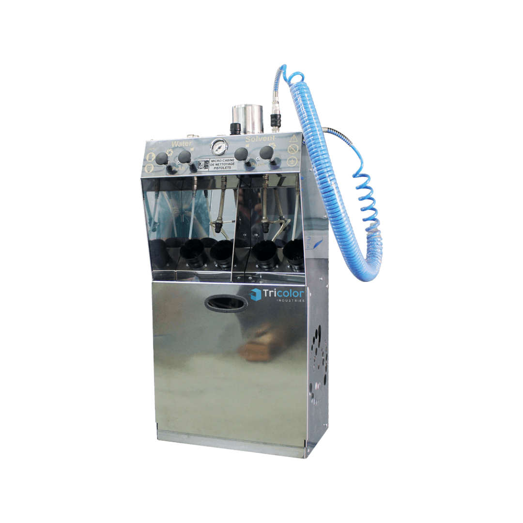 Ce nettoyeur manuel permet de nettoyer les pistolets et accessoires souillés par de la peinture solvantée ou à l’eau. Pour un travail impeccable, il est équipé de brosses rotatives et soufflantes. Très utile pour réaliser des changements de teinte, il dispose également de fonctionnalités très pratiques telles qu’un système de débouchage du pistolet.
